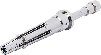 エジェクタープレートに対し垂直の突出しで4枚のバネ鋼が放射状に広がりアンダーカットを処理します。型設計、型構造のシンプル化により加工時間を大幅に短縮します